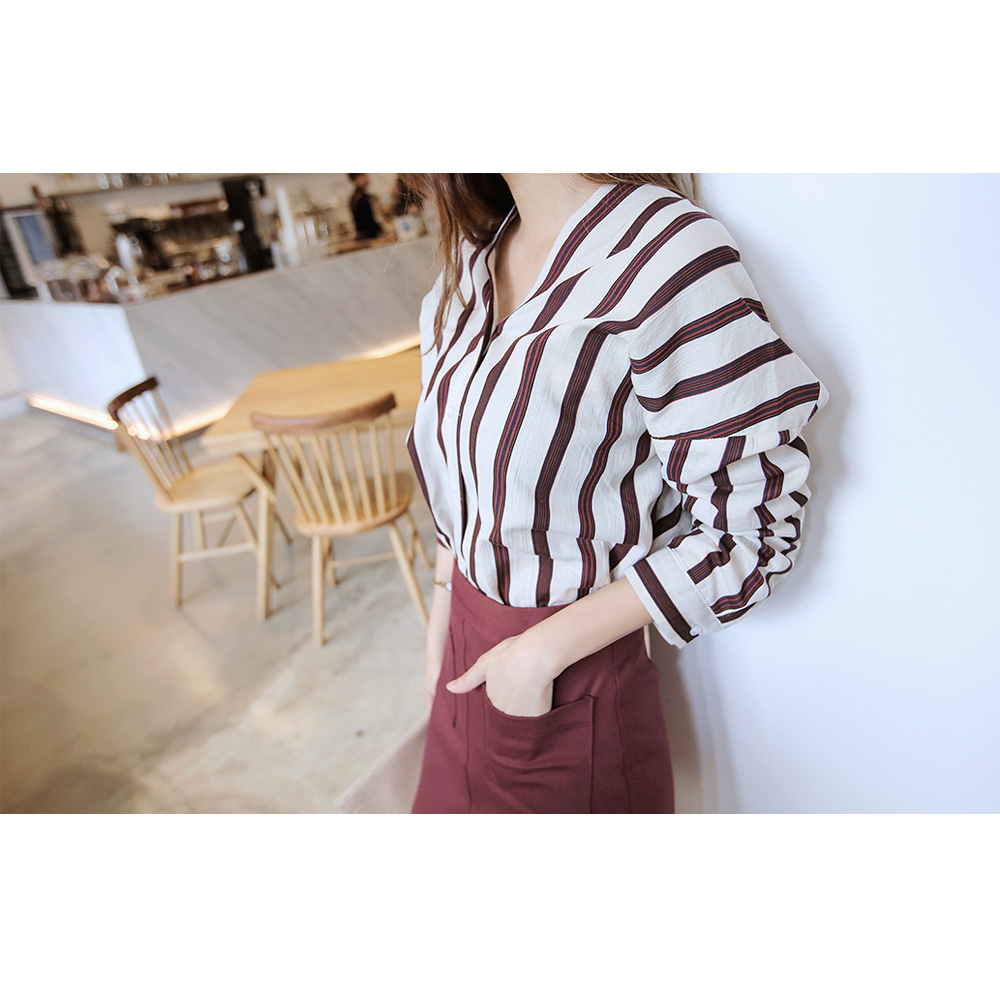 高級感のあるムードの衰えVネックシャツをご紹介します。鮮やかなストライプパターンで製作されて魅力的で洗練されたVのネックラインに着た時よりきれいなシャツアイテムなんですよ。ボタンディテールにオープン、クローズを楽に助けてくれ余裕のあるフィットで製作されてナチュラルなムードで演出する良い。パンツと一緒にマッチして、モダンで洗練された感じで演出してもよくマッチしスカートとフェミニンなスタイルで演出してもきれいによく似合うんです。カラーはワイン、ネイビー、ベージュで構成になりました。
