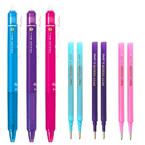 -. Title : Pilot FriXion Ball Knock Retractable Erasable Gel Ink Pens, Extra Fine Point 0.5mm, Pink/Violet/Light Blue Ink, 3 Pens & 6 Refills Value Set