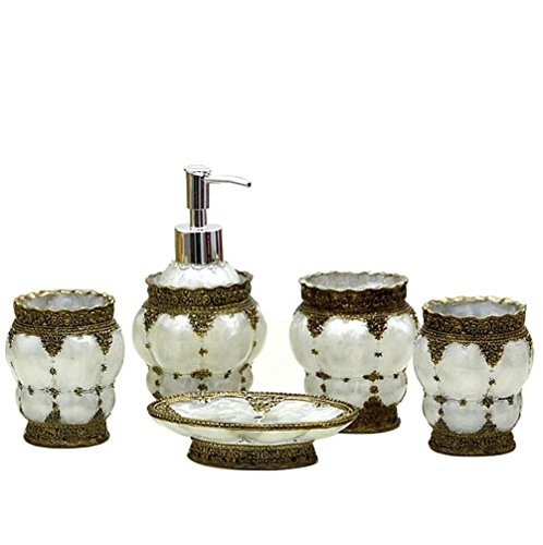 -. Title : VIC-Decor,5PCS Vintage Luxury Bathroom Bath Resin Decor Accessories Collection Set Hotel & Home-Soap dispenser, Toothbrush Holder, Toothbrush Cup, Soap Dish : Simple European Style Emsemble