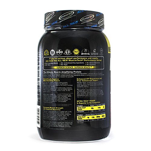 ReleaseDate : 2016-10-10 Studio : Iovate Health Sciences Incorporated Publisher : Iovate Health Sciences Incorporated Binding : Health and Beauty Product Description NitroTech Power contains several key ingredients shown in multiple clinical studies to help you pack on more muscle than ever! NitroTech Power starts with a powerful blend of premium 100% whey protein for high levels of essential branched chain amino acids (BCAAs). MuscleTech researchers also loaded ach two-scoop serving of this incredible new protein with clinical doses of creatine monohydrate, betaine anhydrous, boron citrate and tart cherry ? creating the ultimate muscle-amplifying whey protein! 0