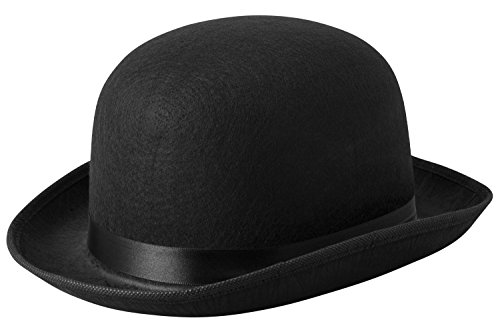 -. Feature : Traditional black felt derby bowler hat adorned with a shiny black ribbon. Made with quality permafelt material / This classic derby hat is great for a costume party, Halloween, Kentucky Derby or any occasion / This bowler is the perfect accessory to your Charlie Chaplin, Mr. potato head or Marry Poppins costume. Great for mime and steampunk / One size fits most adults, teens and older children. Hat measures: 5 inches tall, circumference aprox: 23 inches / This derby hat is a fashion statement piece for hat lovers to wear all year round