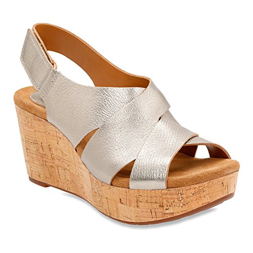 Product DescriptionThe Clarks Caslynn Diem wedge platform sandal delivers unique, trendy style with its cork-wrapped midsole, while the adjustable slingback heel strap ensures a snug fit.0