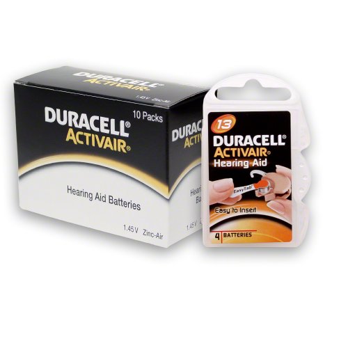 -. Feature : Duracell hearing aid batteries are the longest lasting Duracell batteries. / Brand New. / 1.45-Volt zinc air hearing aid batteries (40 total batteries). / Reliable, long lasting power for your hearing aid. / Easier to open, compact, discreet and totally protects your batteries.