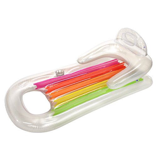 -. Feature : Inflatable pool chair / Full armrests and headrest / Cup holder provides a place for your favorite beverage / Each has a different color / Ideal for use in pools, lakes or mild rivers