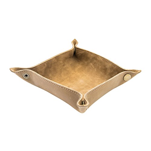 -. Title : Leather Catchall Change Key Wallet Coin Box Tray Storage Valet Handmade by Hide & Drink :: Toffee Suede