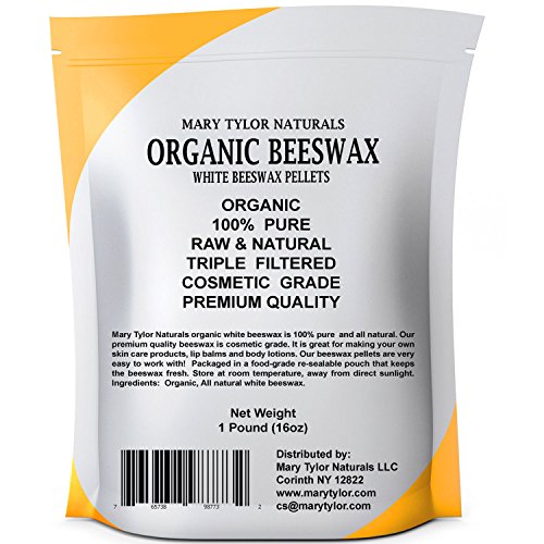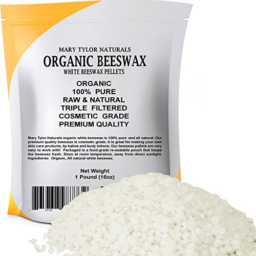 Organic White Beeswax Pellets 1lb (16 oz) by Mary Tylor Naturals, Premium Quality, Cosmetic Grade, Triple Filtered Bees Wax Pastilles Great for DIY Lip...
