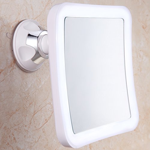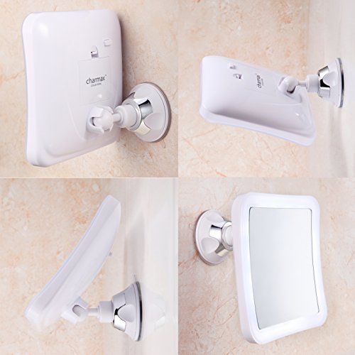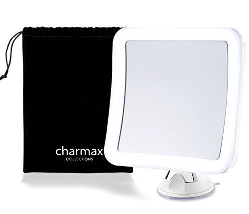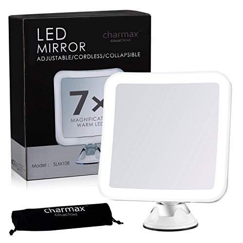 Charmax 7X Magnifying Lighted Makeup Mirror With Travel Pouch, Natural LED Lights Bathroom Vanity Shower Mirror, Battery Operated, Square