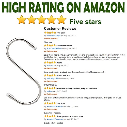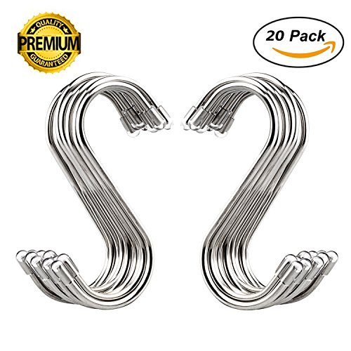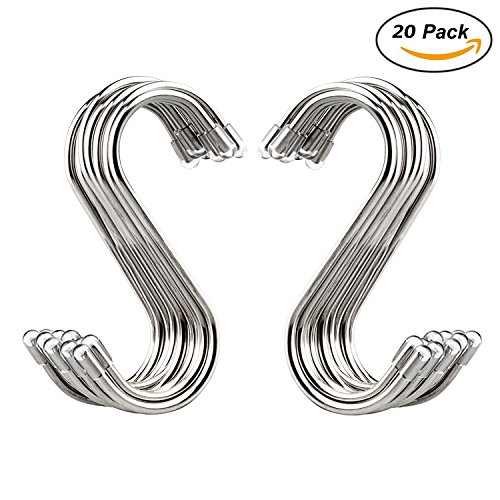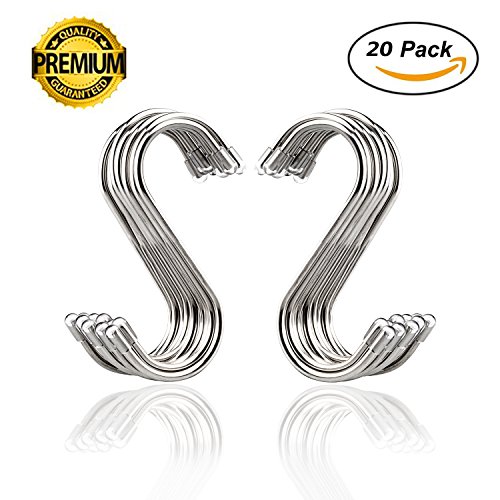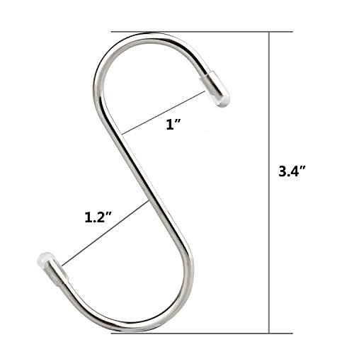 GET YOUR KITCHEN SPACE IN ORDER With these 20 S shape hooks, you will not to be bothered that find the things you need. These will keep them within quick reach and frees up cabinet space. By organizing your kitchenware to streamline processes you will save a lot of time to unclutter and enjoy your time to make a meal. The hooks are easy to install on any rack or shelf and they match most kitchen styles They are very practical and portable, which widely applied in kitchen, closet, bathroom, storage room, workshop, office, and garage. 0
