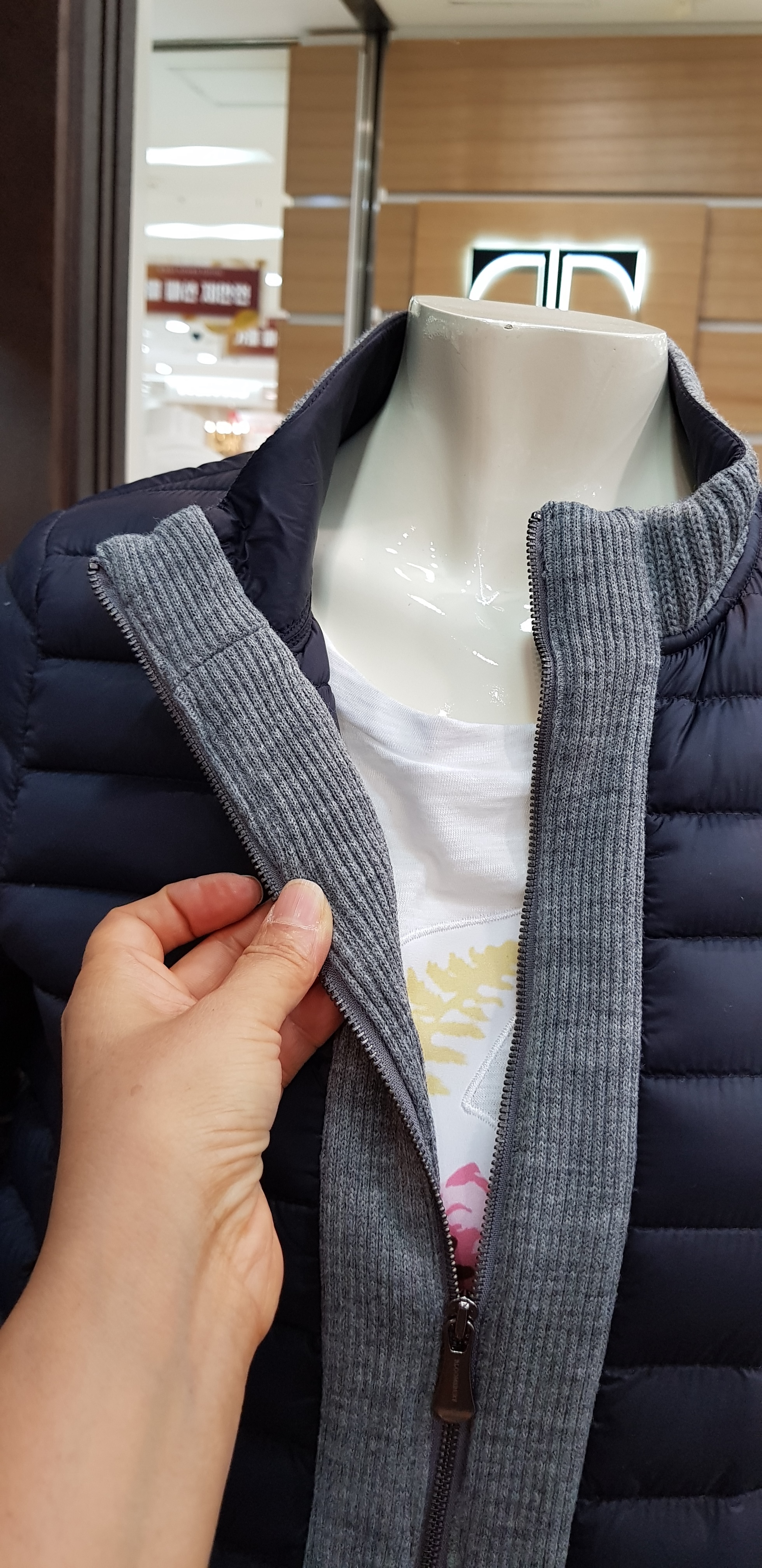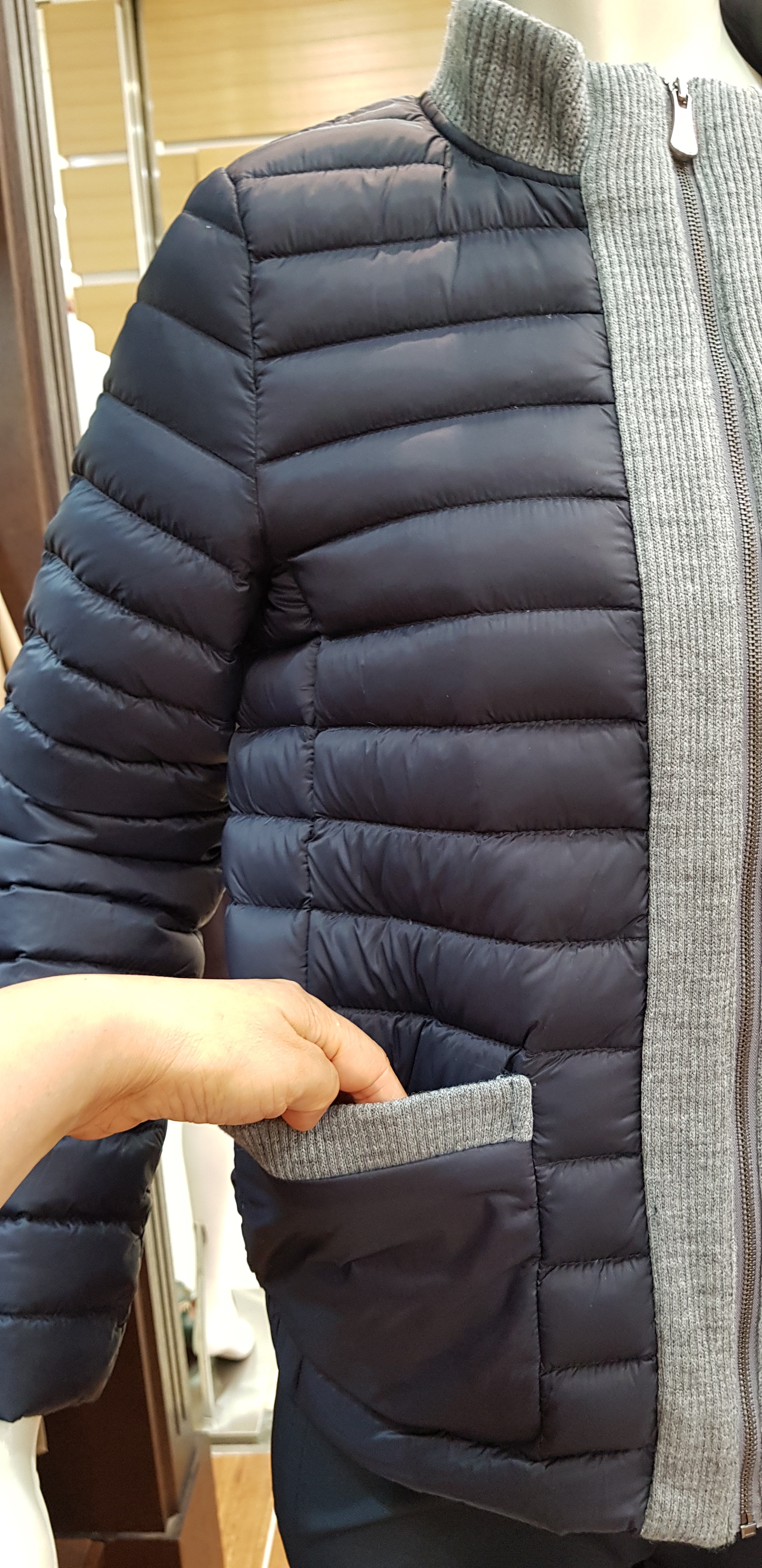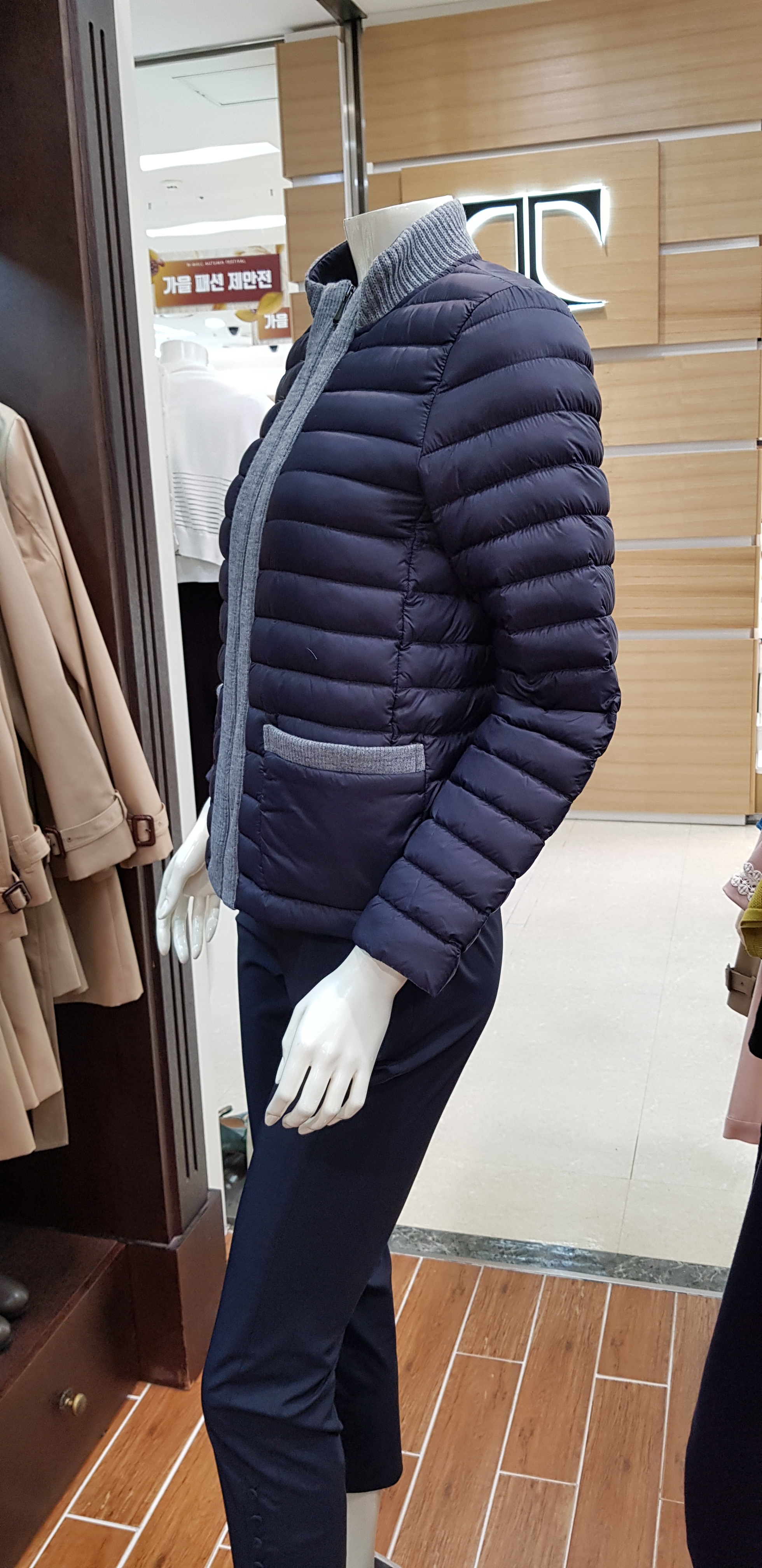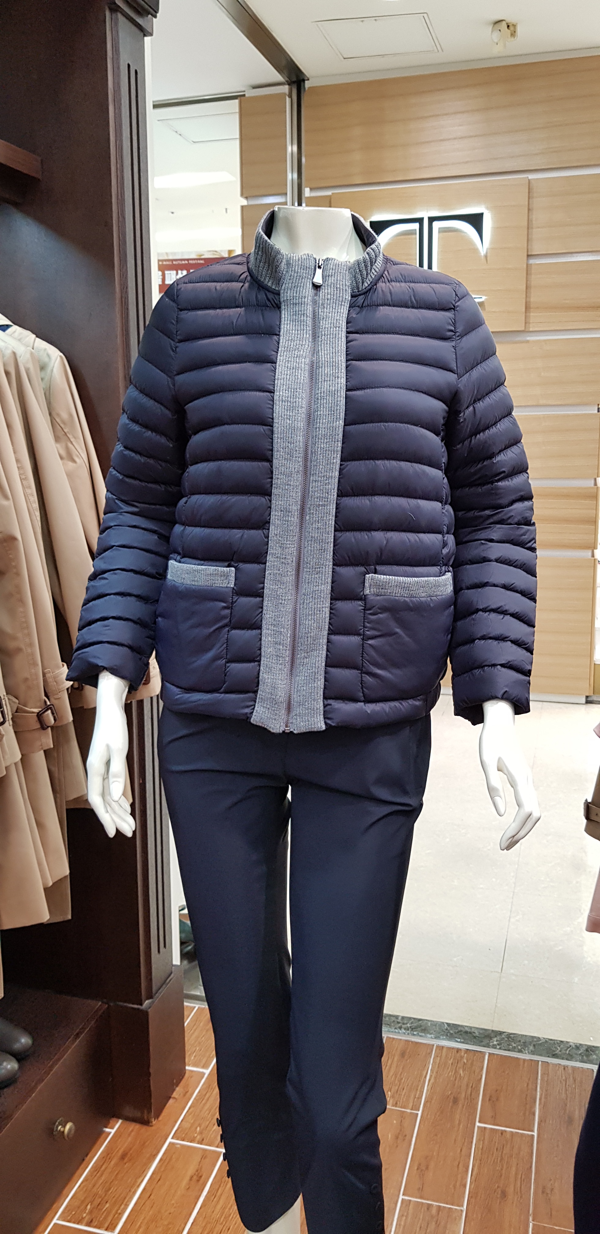 블룸스버리~목선과 앞여밈부분에 니트가 포인트로 가볍고 따뜻한 거위털패딩입니다 짧은 기장의 경쾌함이좋아 캐주얼한 분위기에 좋은 아이템입니다 총장56센티입니다