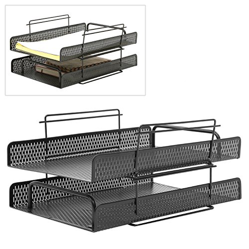 -. Binding : Office Product -. Brand : MyGift -. Feature : An easy to stack document tray made of metal mesh and featuring a black finish. / The front-loading design allows you to slip your documents inside with ease. / Collect several sets of these trays to add even more storage to your desktop. / **Official MyGift® product.** / Approximate Dimensions (in inches): 13.75 W X 6.5 H X 10 D. -. Label : MyGift -. Manufacturer : MyGift -. Model : TB-OFC0179BLK -. MPN : TB-OFC0179BLK -. NumberOfItems : 1 -. PackageQuantity : 1 -. PartNumber : TB-OFC0179BLK -. ProductGroup : Office Product -. ProductTypeName : OFFICE_PRODUCTS -. Publisher : MyGift -. Studio : MyGift -. Title : MyGift Set of 2 Stackable Letter Trays, Office Desktop Document File Rack, Black