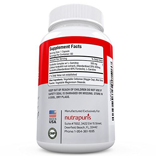 Nutrapuris Forskolin with Carnitine is a one of a kind formula that helps you lose weight effortlessly without any side effects or harmful chemicals. Our supplement focuses on burning away fat while boosting your metabolism so you may shed unwanted weight while enhancing your physical performance without any jitters or stimulants. Our all-natural formula promotes weight loss in even those stubborn areas that just don't seem to reduce in size no matter how hard you workout.