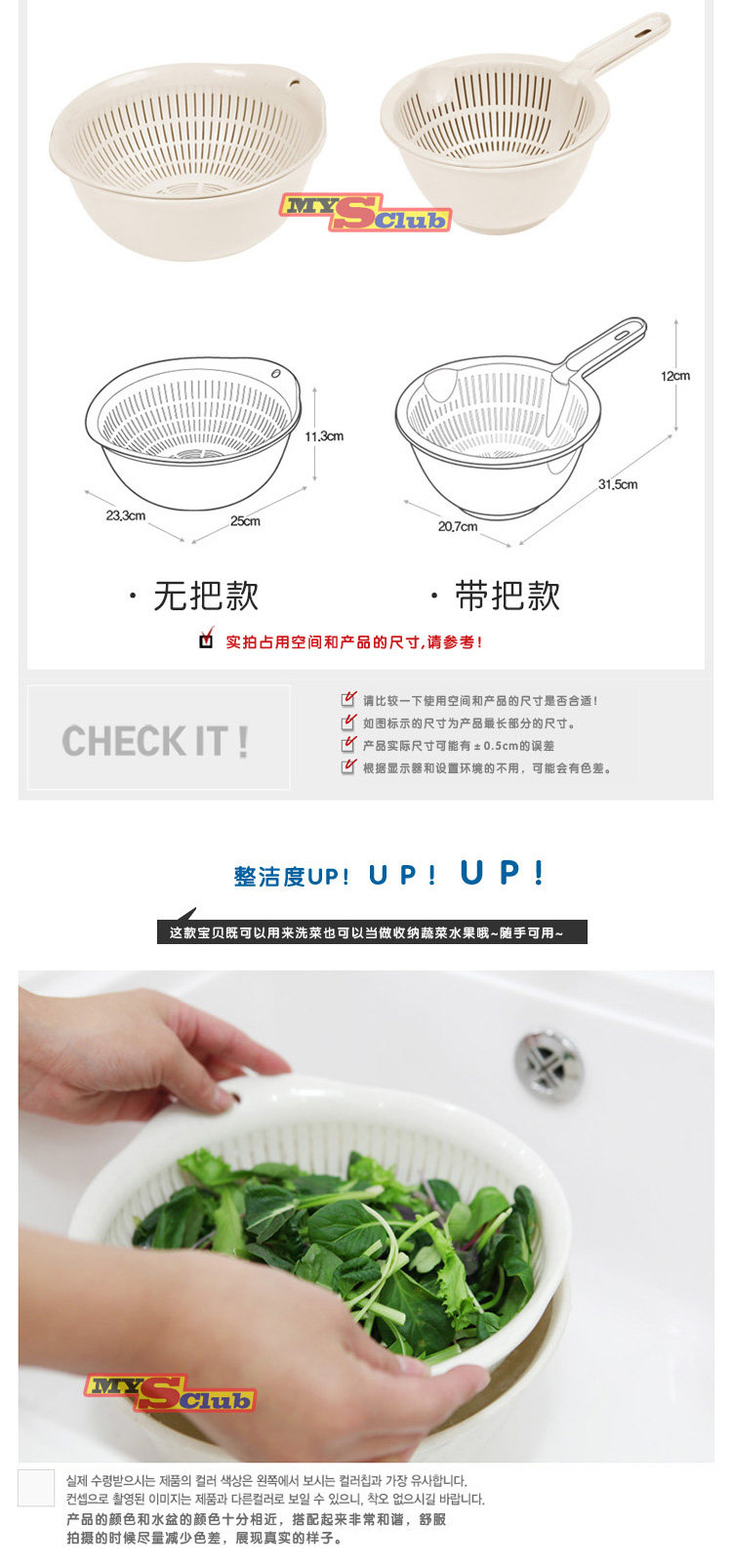 塑料手把洗菜篮子 厨房双层洗菜盆沥水筐蔬菜水果盆 大号