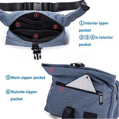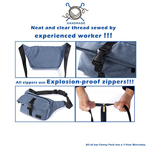 Product Description Are you looking for an elegant and durable waist fanny packs it? Are you still looking for those cheap made, single function, shape stereotyped fanny packs? Are you still worried about your waist belt bag cannot carry with water bottles? When you just want to bring some small thing to work or hiking, do you still want to pick up your large and heavy bag? If the answer to any of those questions is no, then you should keep on reading because we have the finest waist pack proposal for you! Still hesitating this fanny packs is right for you? ? Unique color, Waterproof, washed oxford. ? Explosion-proof zipper, not easy to broke. ? Neat and clear thread sewed by experienced worker. ? Two spacious main pockets and double adjustable buckles (up to 120cm) for a snug fit. ? Simple and modern design, suitable for many occasions. ? Casual/Business/College/Travel/Outdoor Sport/Hiking/Camping/Climbing/Cycling.