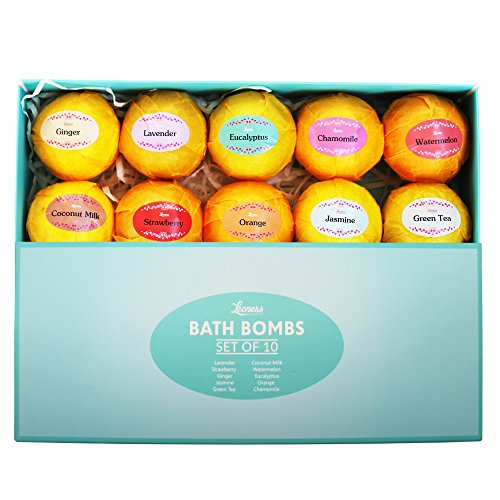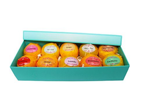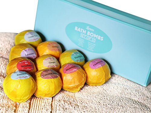 TREAT YOURSELF & YOUR SENSES - 10 scents - our bath bomb set contains 10 unique experiences that will take your senses to a place you can only imagine. Lavender, Strawberry, Ginger, Jasmine, Green Tea, Coconut Milk, Watermelon, Eucalyptus, Orange, Chamomile - Which one will be your favorite?