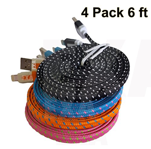 -. Title : EXA 6FT 4Pack iPhone Charger Cable USB Flat Fabric Nylon Braided Lightning Sync 8 Pin Cable Extra Long Charging Cord 10 Foot for iPhone X 8 8Plus 7 7Plus 6s 6sPlus 6 6Plus SE 5 5s 5c iPad iPod