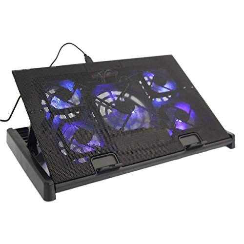 -. Binding : Electronics -. Brand : ThaiShop4all -. EAN : 0718179996641 -. Feature : Built in powerful fans for easy thermal heat dissipation / It is characterized by double ports and in built light / High air flow and fan speed to ensure workable effect.Your laptop can dissipate easily with this wonderful cooling pad / Extend the lifespan and functionality of your notebook / Especially designed for meeting 12-17" notebooks -. Label : ThaiShop4all -. Manufacturer : ThaiShop4all -. PackageQuantity : 1 -. ProductGroup : PC Accessory -. ProductTypeName : COMPUTER_ADD_ON -. Publisher : ThaiShop4all -. Studio : ThaiShop4all -. Title : 10 -17 inch Laptop 5 Fans Adjustable Stand Pad Black -. UPC : 718179996641
