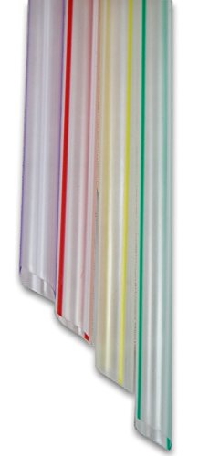 -. Feature : Premium 8.0 x 0.5 Inch Individually Wrapped Bubble Tea Straws (50 quality straws) / Size: Approx. Dimensions 8.0 Inch, Diameter 0.5 Inch. / Clear straws with different color stripes (blue, white pearl, pink and yellow) / Straws are extra wide for sucking up thicker drinks such as boba tea or smoothies / One end of each straw is cut at an angle