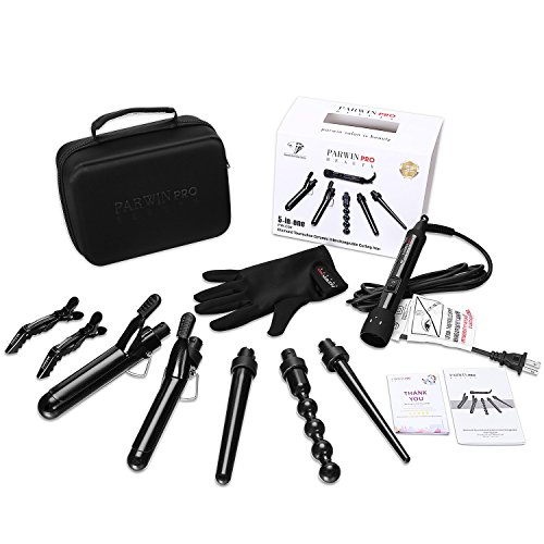 PARWIN PRO 5-in1 Interchangeable Curling Iron make your beauty life more convenient and interesting! This curling wand is extremely versatile and every barrel will create a different type of curl, with interchangeable barrels: Cylindrical 32/32mm, 25/25/25mm, 25/18mm, 18/9mm, Bubble wand: 19mm. 0