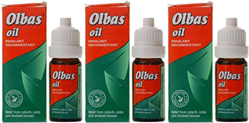 Olbas Oil Inhalant Decongestant 10mL Olbas is a mixture of essential pure plant oils for relief of bronchial and nasal congestion and hayfever by inhalation, and for symptomatic relief of muscular pain by application to the skin. This formulation is non greasy and provides immediate relief for catarrh, colds and sinuses. Active Ingredients: Cajuput oil BPC 18.5% w/w, Clove oil EP 0.1% w/w, Eucalyptus oil EP 35.45% w/w, Juniperberry oil BPC 2.7% w/w, Levomenthol EP 4.1% w/w, Dementholised mint oil BP 35.45% w/w, Wintergreen oil BPC 3.7% w/w Dosage: Adults and children aged 2 and over: Inhale 2 or 3 drops from a tissue to clear painful sinuses and nasal congestion. At night sprinkle 2 or 3 drops on to a tissue tucked inside the pillowcase for all night relief.