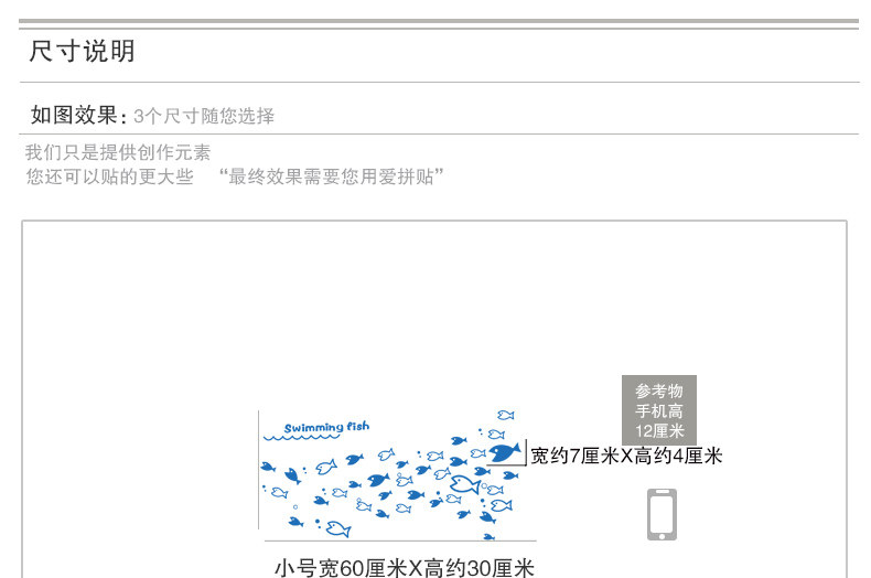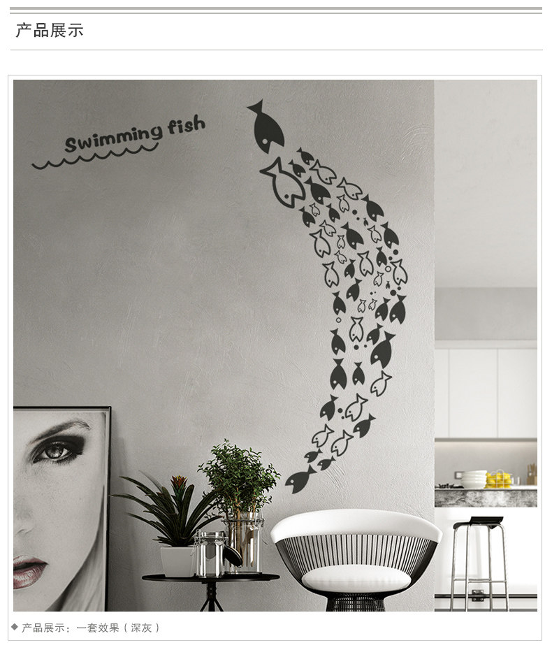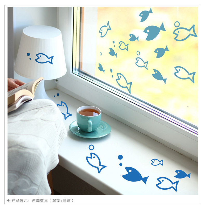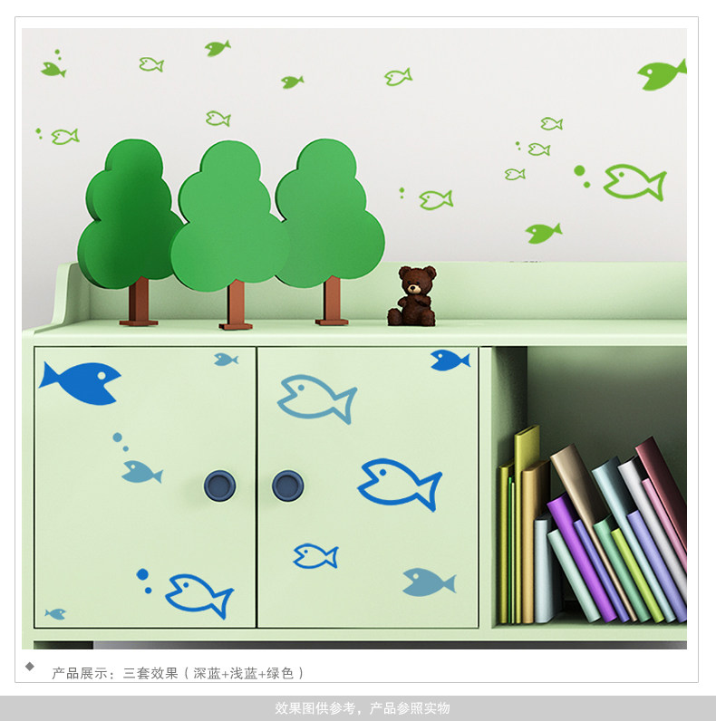 儿童房早教益智墙贴纸贴画游泳鱼群浴室卡通壁纸可爱小鱼墙纸防水