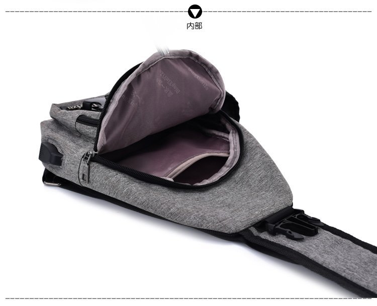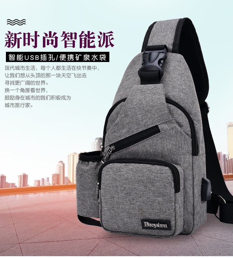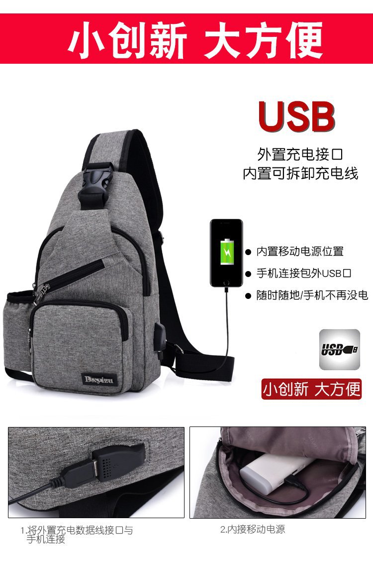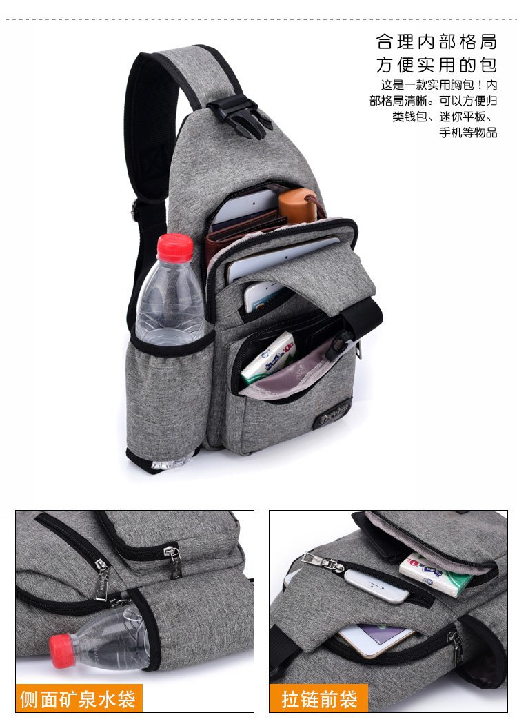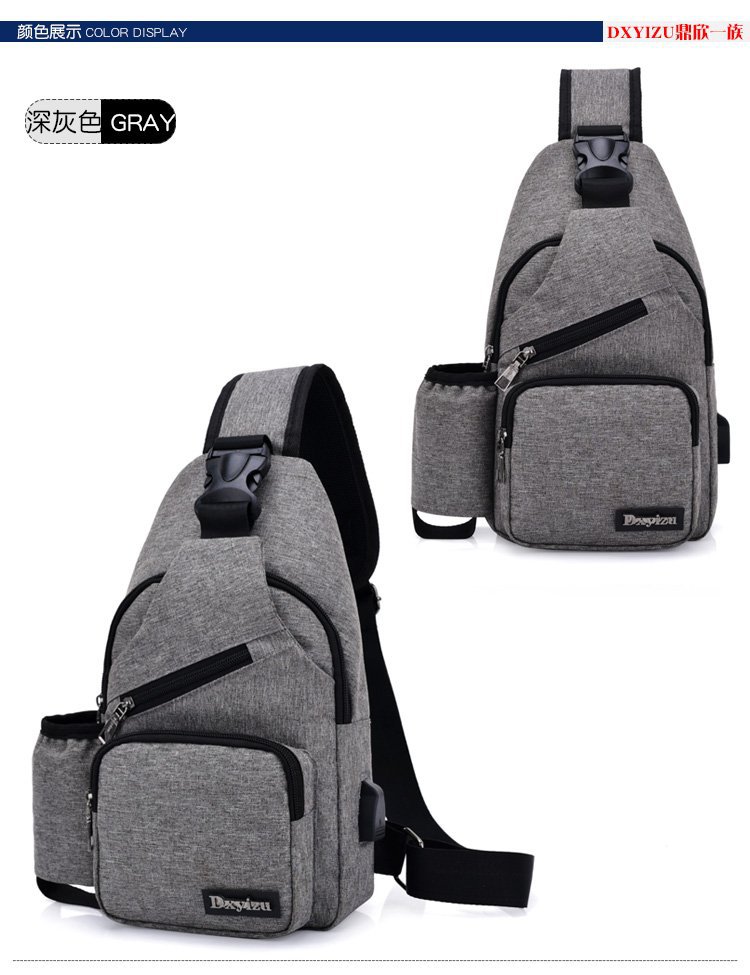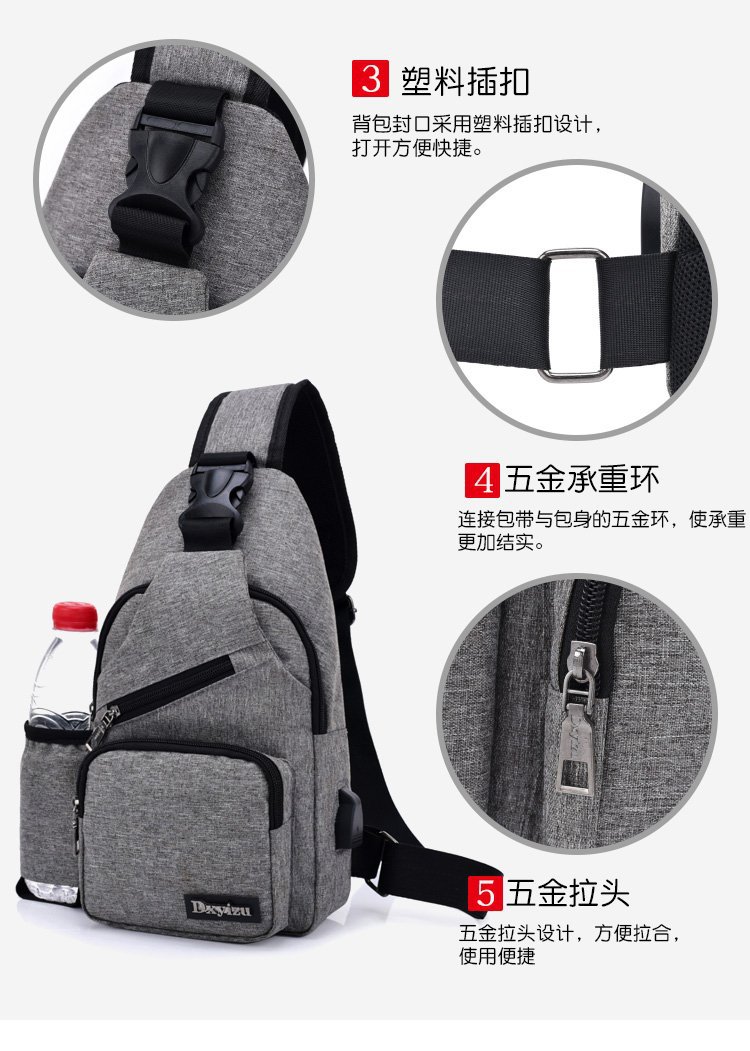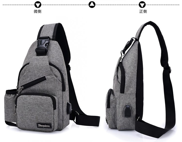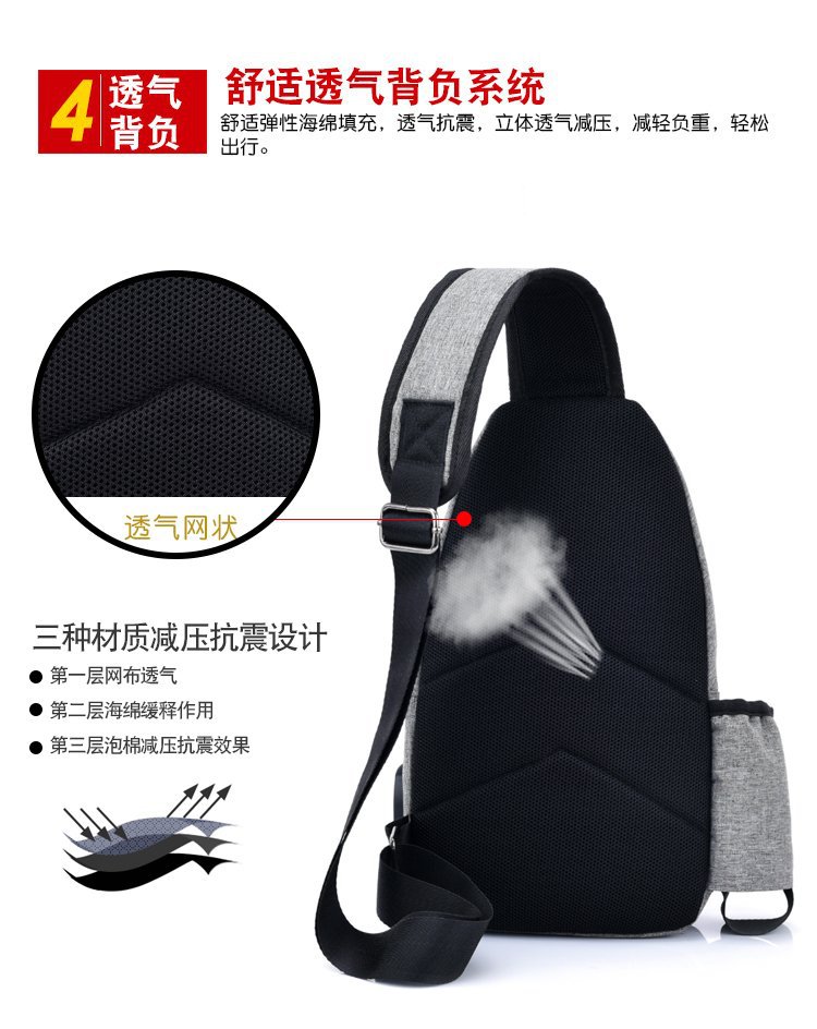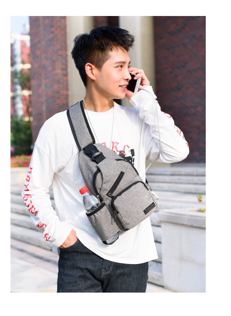 Product details of Korean Leisure Outdoor Sprot Sling Bag Shoulder Backpack Casual Cross Body Bag Outdoor Sling Backpack USB Charge Chest Bags (Grey)