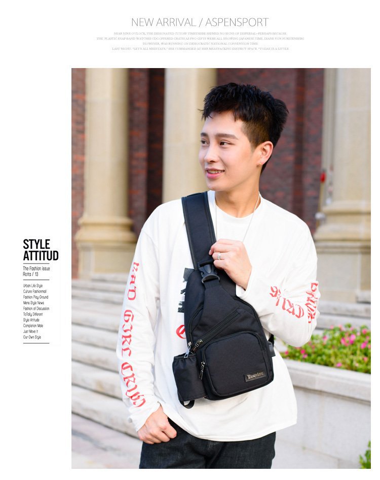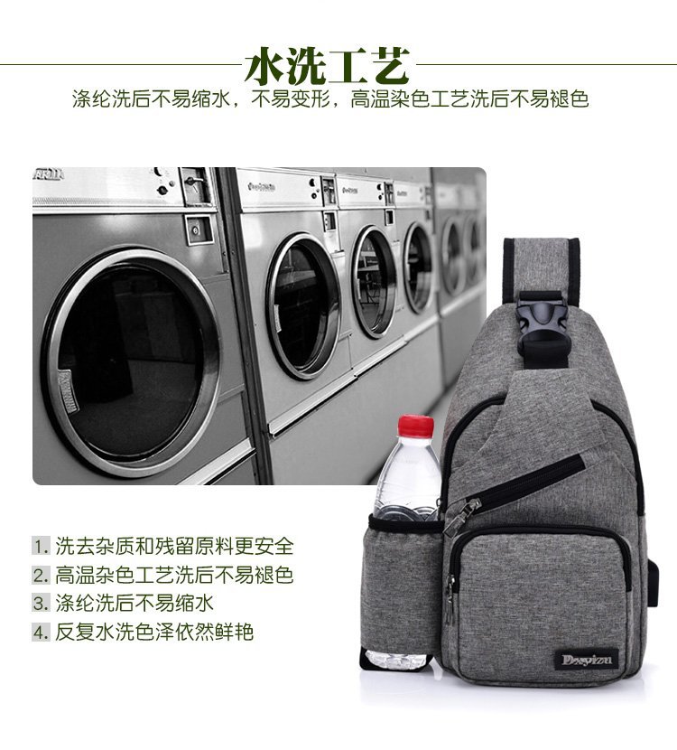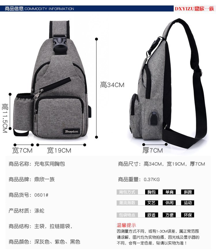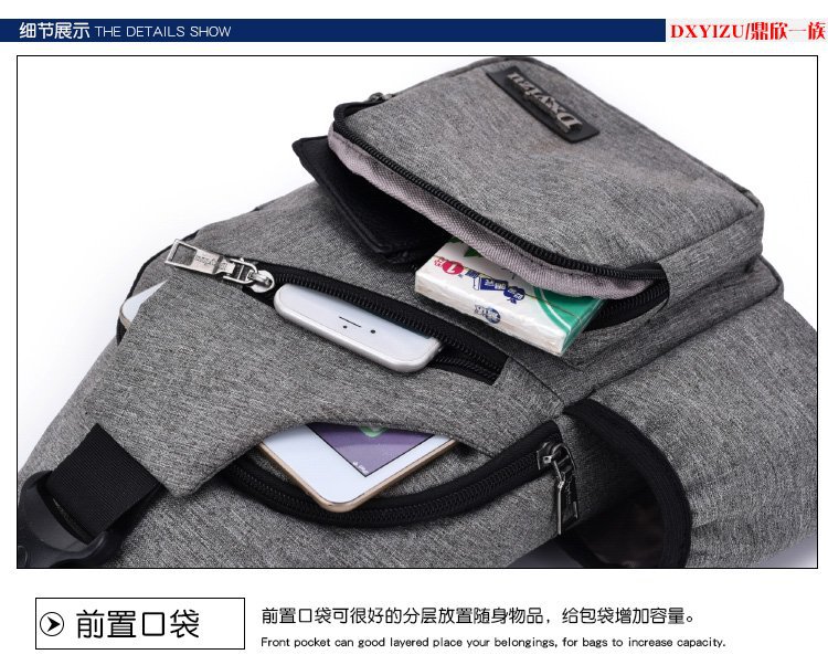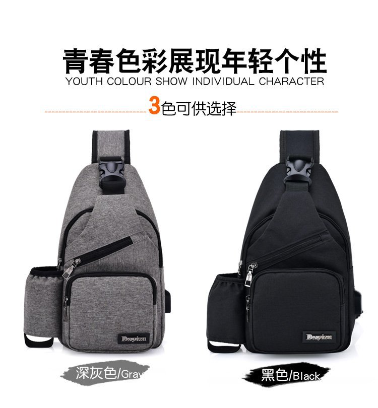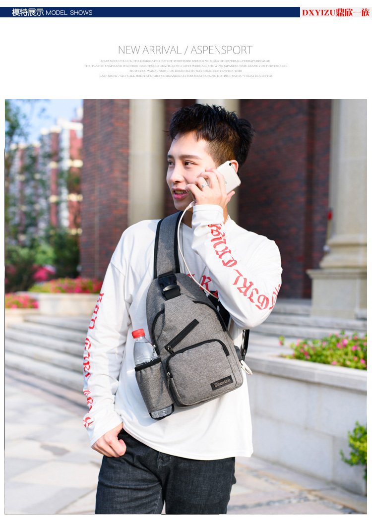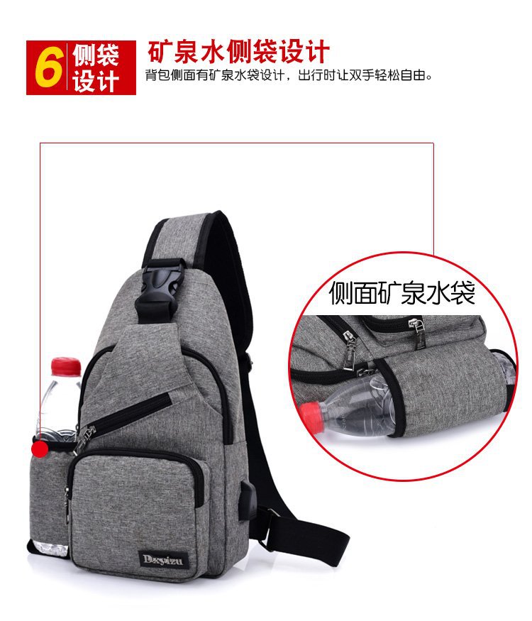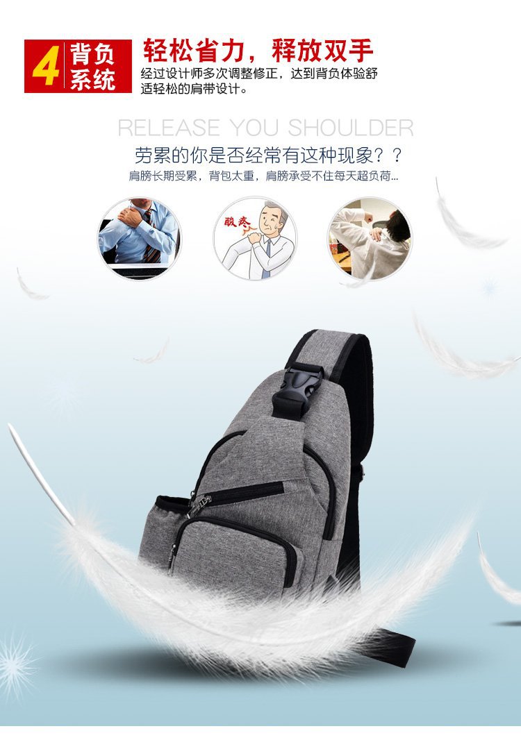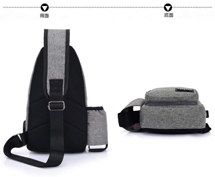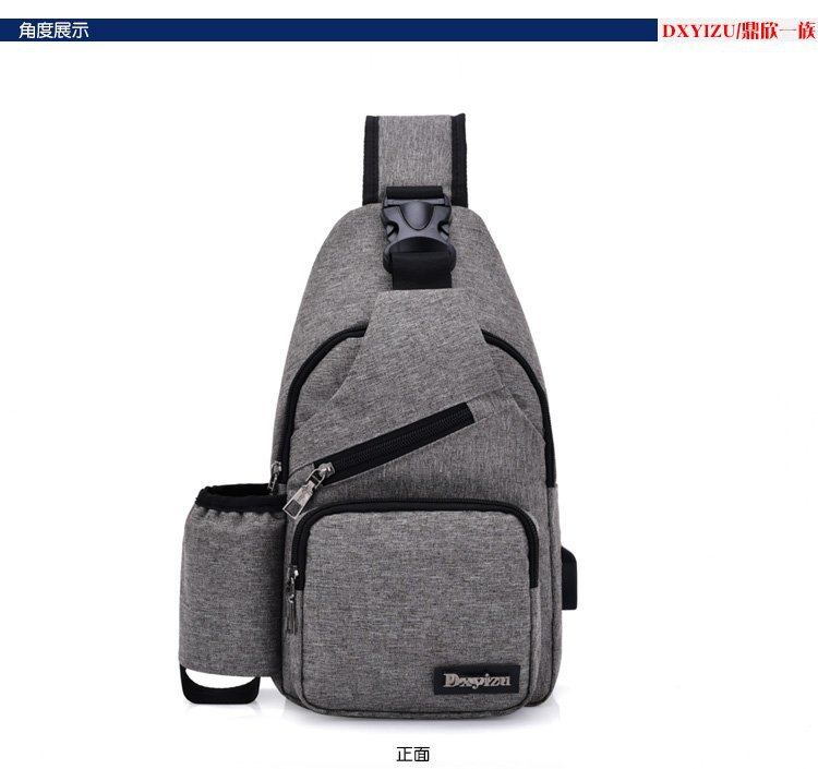 Product details of Korean Leisure Outdoor Sprot Sling Bag Shoulder Backpack Casual Cross Body Bag Outdoor Sling Backpack USB Charge Chest Bags (Grey)