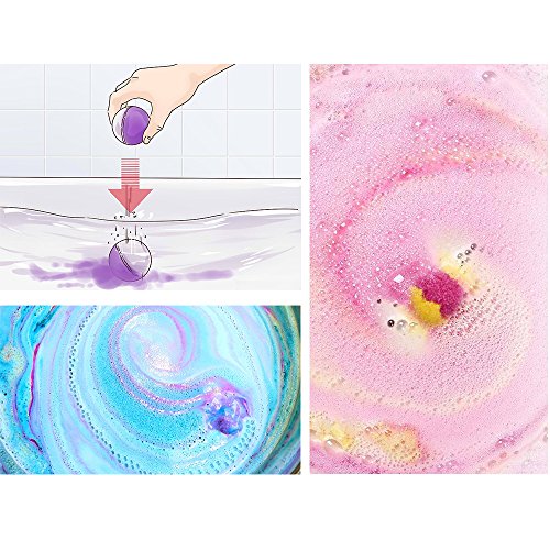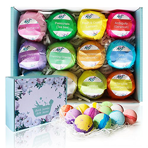 12 SCENTS & COLORS: 12 kinds of bath bombs with different flavors infused with essential oils for relaxing, all with longer-lasting perfuming effects, fresh and clean fragrances. Each bath bomb contains dried flower petals to give you a soothing & spa-level experience with a natural colorful bath at the same time.