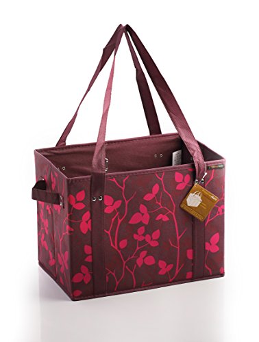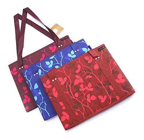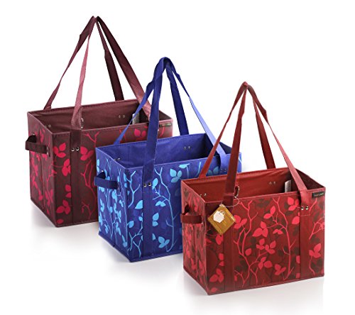 PreserveNext Reusable Classic Tote / Collapsible Shopping Box Set with Reinforced Bottom, Side Handles and Key Ring Clasp - Assorted (3 Pack)
