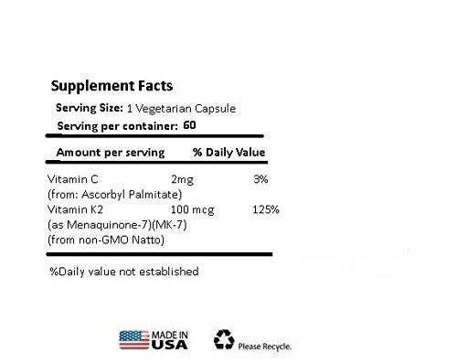 Product DescriptionAbsonutrix Vitamin K 2 MK 7 100mcg 60 veggie caps suitable for vegetarians non gmo Natto0