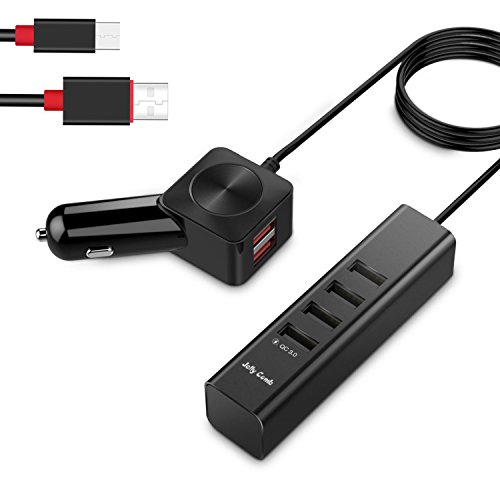 -. Feature : 【Qualcomm Quick Charge 3.0】4 × Faster to charger your QC 3.0 enabled devices like LG G5 Samsung Galaxy Note 5 4, S7, S7 Edge or HTC than traditional charging methods with 38% higher efficiency comparing to Quick Charge 2.0. / 【Universal Fast Charging】Backwards compatible with Qualcomm Quick Charge versions 1.0, 2.0. Compatible with all USB powered devices including Quick Charge 2.0, 1.0 & Apple phones & tablets. / 【Smart Car Charger】The exclusive Jelly Comb smart identification technology recognizes your device and distribute the maximum charging current possible. Support charging 6 devices simultaneously. / 【Back Seat Friendly】With a chair back clip, you can fix the extended 4-port part to the back of the chair, 55 inch adapter cable to make sure everyone can reach the charger. / 【Built-In Safety designed car charger】Over-current, over-charging and over-heating safety protections, this QC 3.0 car charger meets the highest quality and safety standards that completely protect your devices under charging.