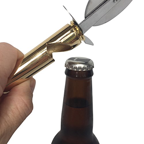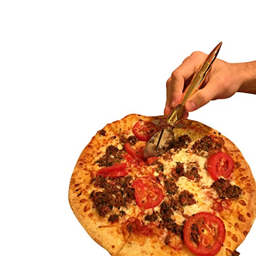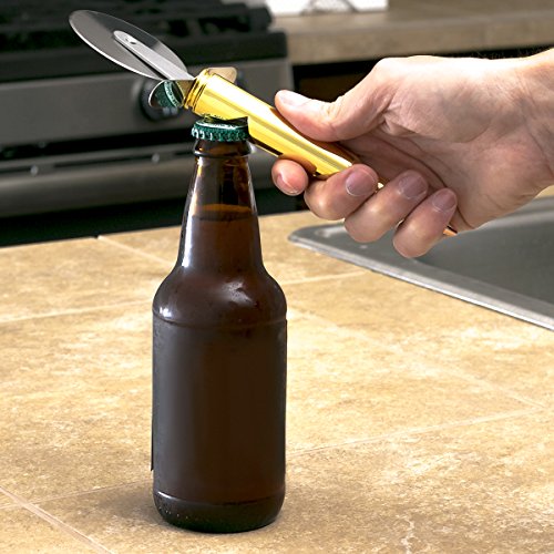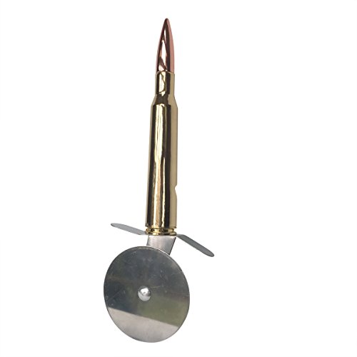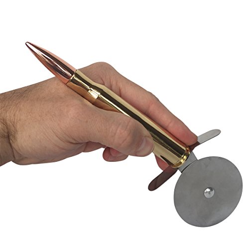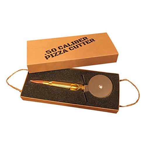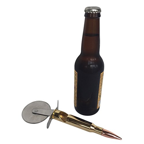 Studio : Greenacre Enterprises Publisher : Greenacre Enterprises Product Description The ultimate way to cut your pizza and open your beer. Made from a full size replica .50 caliber bullet with a built in bottle opener. This is the coolest pizza cutter you will ever own and is bound to start a conversation the next time you buy a pizza. It features an extra sharp 2.5 inch cutting blade to glide throw pizza with ease and a built in 50 caliber bullet bottle opener to crack open your beer. It also comes gift packaged in a brown cardboard ammo crate with twine rope handles. This is the perfect gift for fathers day, groomsmen gifts, Christmas, stocking stuffer's, or for family and friends in the Military, Air Force and Navy. Your next pizza and beer has met it's match - "Hasta la Vista......Pizza" 0