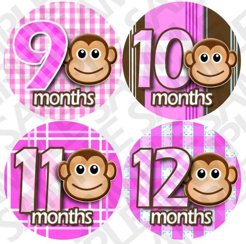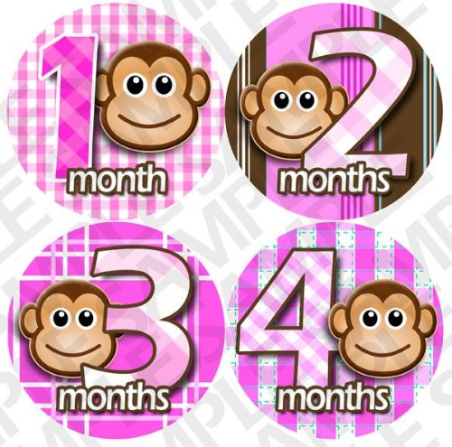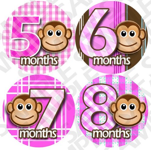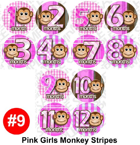 -. Feature : Pink Monkey Stripes onesie stickers great baby shower gift! / Adhesive sticker is super thin, and waterproof. / Flexible and tear proof allowing it to bend with the babies movement. / Baby month stickers are used placed on the baby's shirt, as a photo prop for pictures. / Extra durable adhesive is completely removable.