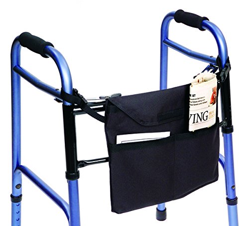 Studio : Essential Medical Supply Publisher : Essential Medical Supply Binding : Health and Beauty Product Description The Deluxe Walker Pouch features 3 pockets for maximum storage. Each pocket can be closed with a hook and loop strap for secure transportation. Will fit any folding walker with two front cross braces. 0