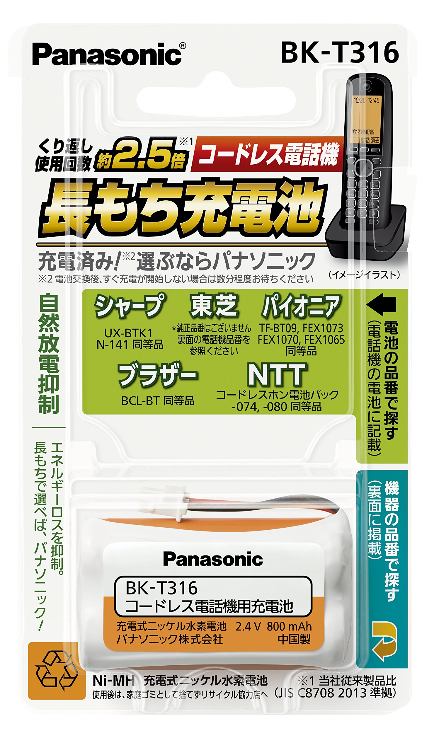 1 Talk time lasts longer! * 1 2 Built-in safety device * 2 3 times of repetition times 2.5 times * 3 * 1 Capacity is min. 800 mAh (BK-T3 series only) with 2% higher than the current product * 2 Polymer was used