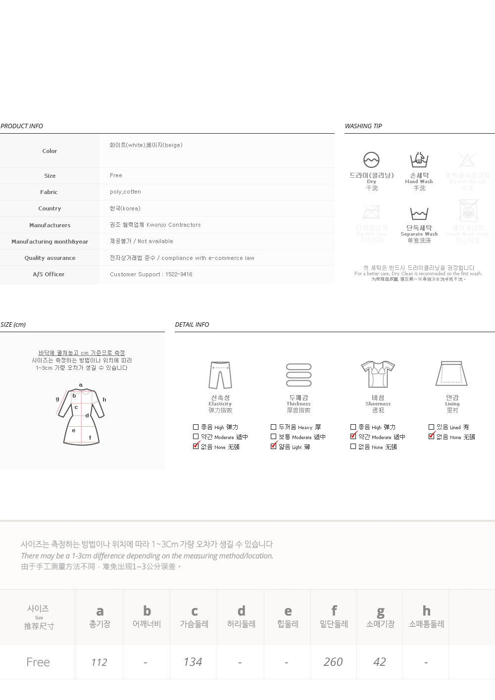 피팅 컬러와 사이즈는 베이지, Free 입니다