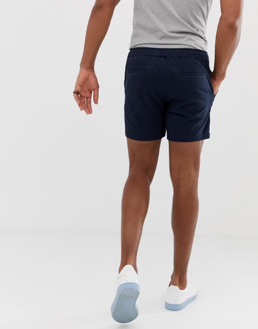 ASOS DESIGN 2 pack slim shorter chino shorts with elastic waist in putty & navy