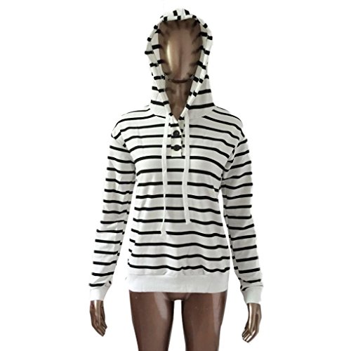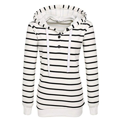Title : Tenworld Womens Loose Stripe Hoodie Sweatshirt Jumper Pullover Tops (L, White)