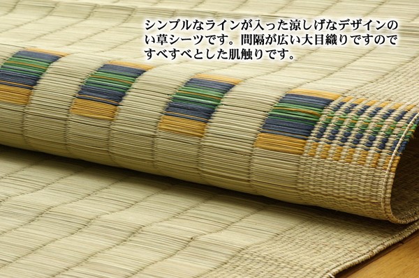 【商品名】純国産/日本製 い草のシーツ(寝ござ) 『大目舞子』 ブルー シングル約88×180cm 〔吸湿 抗菌 防臭効果〕