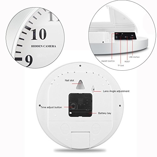 -. Binding : Electronics -. Brand : MATECam -. Feature : Crystal Clear HD 1080P Video / Invisible Indicator Light and Switch it on/off by Phone APP / Distance of motion detection shooting:6 m straight-line distance / Remote Real-time View: faithfully record your uninvited guest's action in real-time & can act as proof provider for further use when there is any accident. / Lens angle is adjustable -. Label : MATECam -. Manufacturer : MATECam -. Model : MATECam 1080P WiFi Spy Camera -. MPN : MATECam 1080P WiFi Spy Camera -. PackageQuantity : 1 -. PartNumber : MATECam 1080P WiFi Spy Camera -. ProductGroup : Photography -. ProductTypeName : SURVEILANCE_SYSTEMS -. Publisher : MATECam -. Studio : MATECam -. Title : MATECam HD 1080P WiFi Camera Wall Clock Security with Motion Detection, Nanny Camera,Surveillance Cameras Video Recorder Support Android IOS Live View