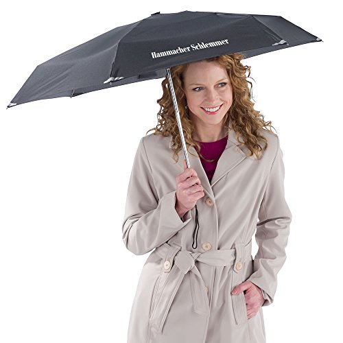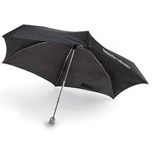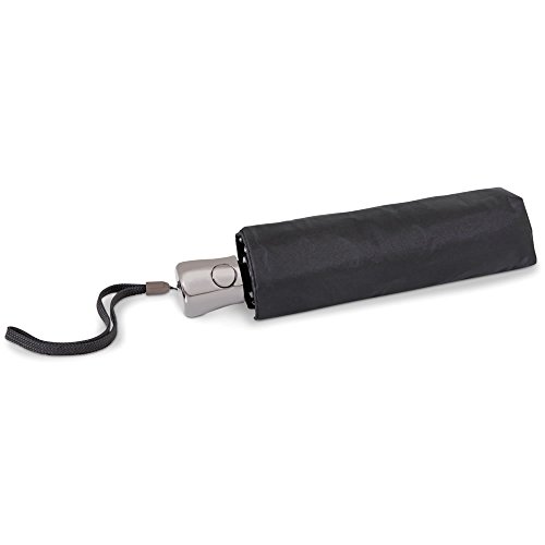 -. Feature : Carried inconspicuously in a purse or trouser pocket, this is the smallest umbrella available that opens and closes the canopy with the push of a button. / Only available from Hammacher Schlemmer and just 8" long when closed, the umbrella instantly deploys its generous 40" diameter canopy when a button on its handle is pressed. / When the skies clear, a second press of the button collapses the canopy (as with all umbrellas, the shaft must be manually retracted). / Designed by a third-generation umbrella maker based in rainy Portland, Oregon, the umbrella is constructed with a nylon canopy and steel shaft, ribs, and stretchers that withstand breezes better than flimsily built compacts made with plastic. And unlike other so-called compacts, it's small enough to keep on your person at all times, so you'll never get caught unprepared by a sudden downpour. / With wrist strap and nylon sleeve. Closed: 8" L x 2 3/4" diameter. (9 oz.) Black.