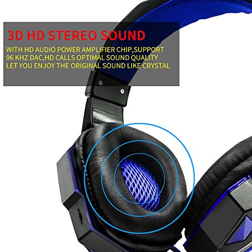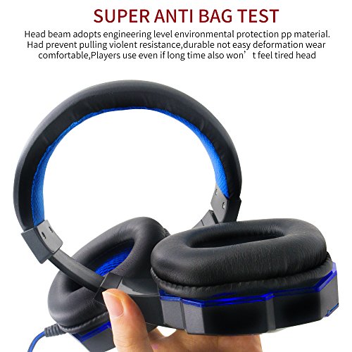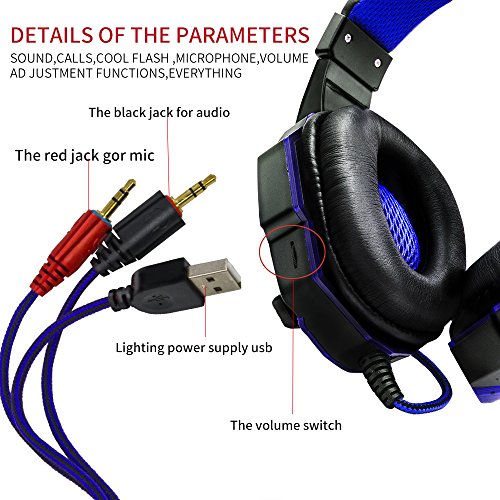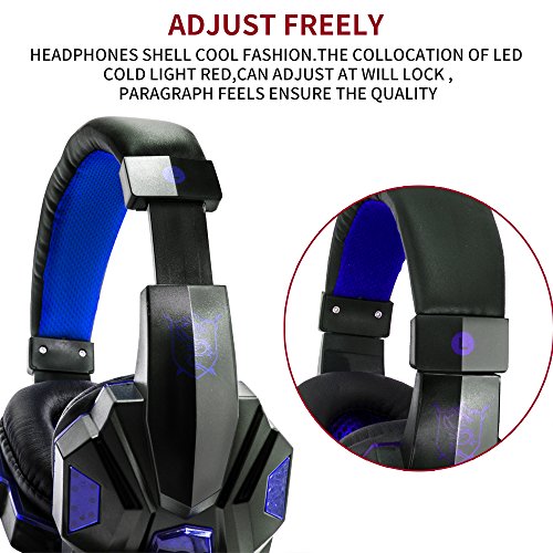 Anskp Gaming Headset 3.5mm Wired Stereo Over-Ear Headphone Headband with Microphone and LED Lighting for PC Computer Game with Noise Isolation and Volume Control -Black and Blue