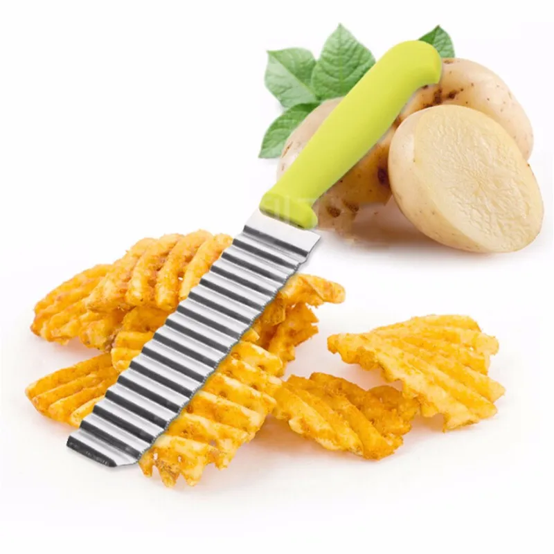 New Stainless Steel Potato Chips Wavy Cutter Dough Vegetable Crinkle Slicer Kitchen Cooking Tools