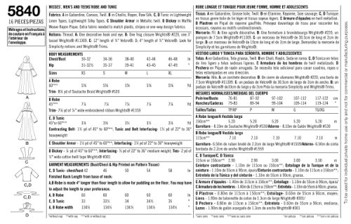 - Misses, men and teen costumes in size a (xs-s-m-lxl) simplicity pattern 5840