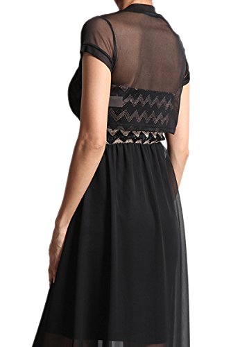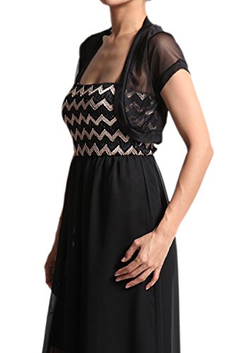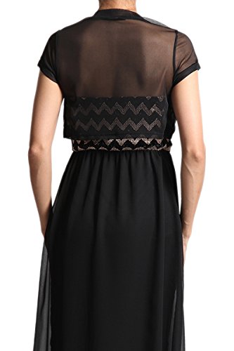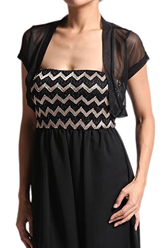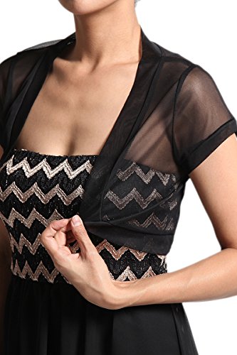 Binding : Apparel Product Description This romantic yet sexy sheer short sleeve mesh bolero is perfect for layering with dresses. Easy to wear with open front lightweight black simple cardigan. Absolutely cute cropped cut and this shrug is both for casual day out with spaghetti strap tank top with mini shorts and semi formal night out with tube chiffon dress.