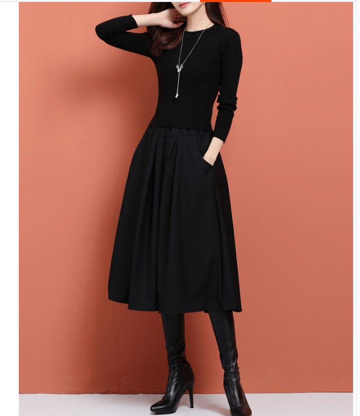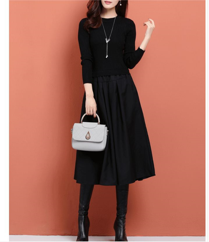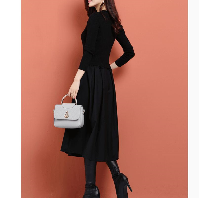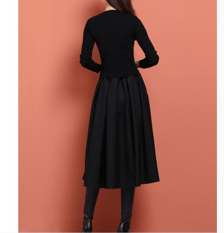 シンプル きれいめ配色 ドッキングワンピース 大人 上品 無地 ブラック