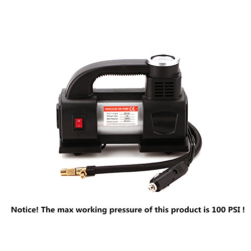 Portable Auto Air Compressor Pump, Electric 12v DC Tire Inflator by 100 PSI, solid brass screw connector for long service life