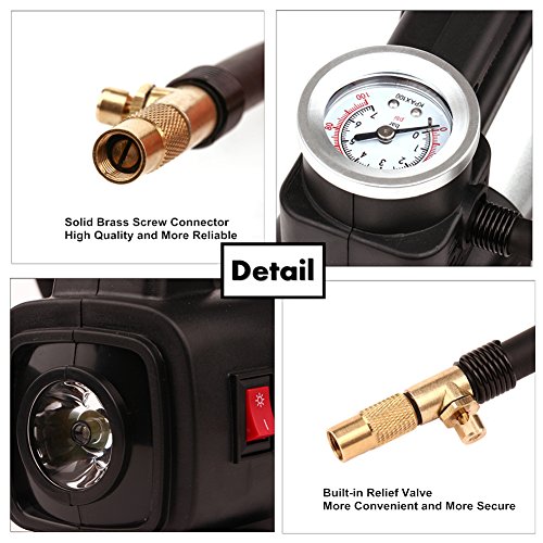 - HIGH QUALITY - Heavy duty compact design uses high quality materials, solid brass screw connector for long service life, built-in relief valve allows for air discharge when the pressure is too high
