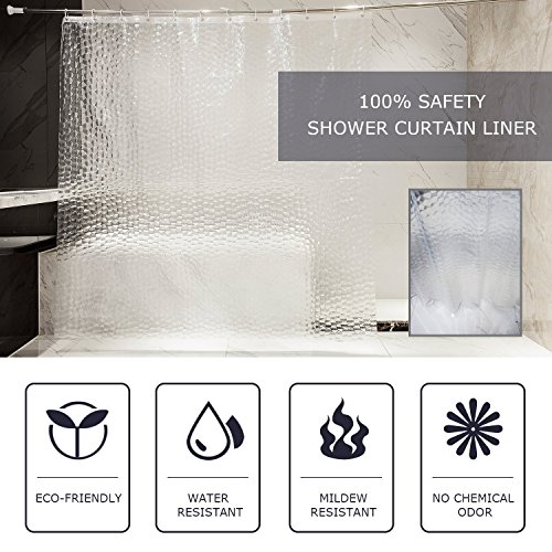 Superior quality, durable shower curtain liner! Our curtain is completely imported and made of super-high quality environmental EVA plastic material, there is absolutely no peculiar smell.