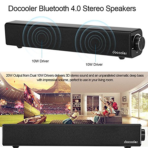 -. Title : Docooler Bluetooth 4.0 Speakers Sound Bar Home Theater 20W Output from Dual 10W Drivers Deep Bass AUX-IN Music Play 4400mAh Built-in Battery Black for TV PC Tablets Smart Phones