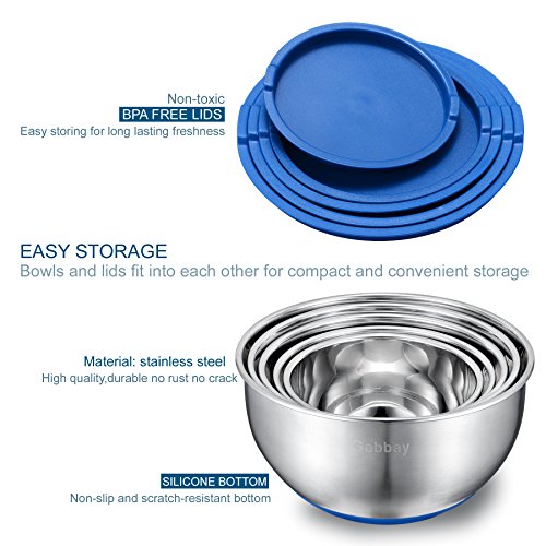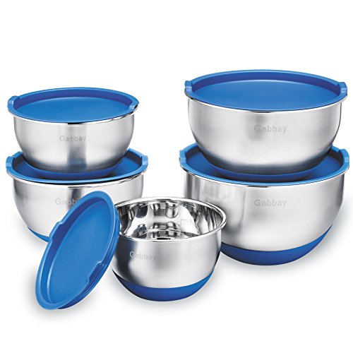 5 Piece Stainless Steel Mixing Bowls With Lids, Non-Slip Silicone Bottom, Stackable For Minimal Storage by Gabbay - 1 – 2 – 2.5 – 3.5 – 4.5 Qt.